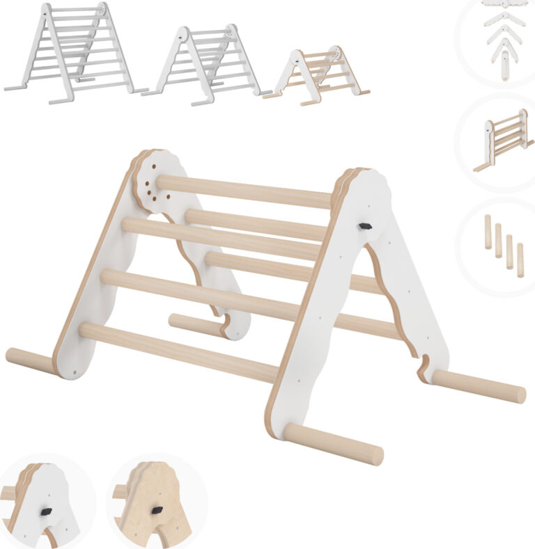 - Das Kletterdreieck Holz Kinder ist sowohl für Babys ab 9 Monaten als auch für ältere Kinder geeignet.